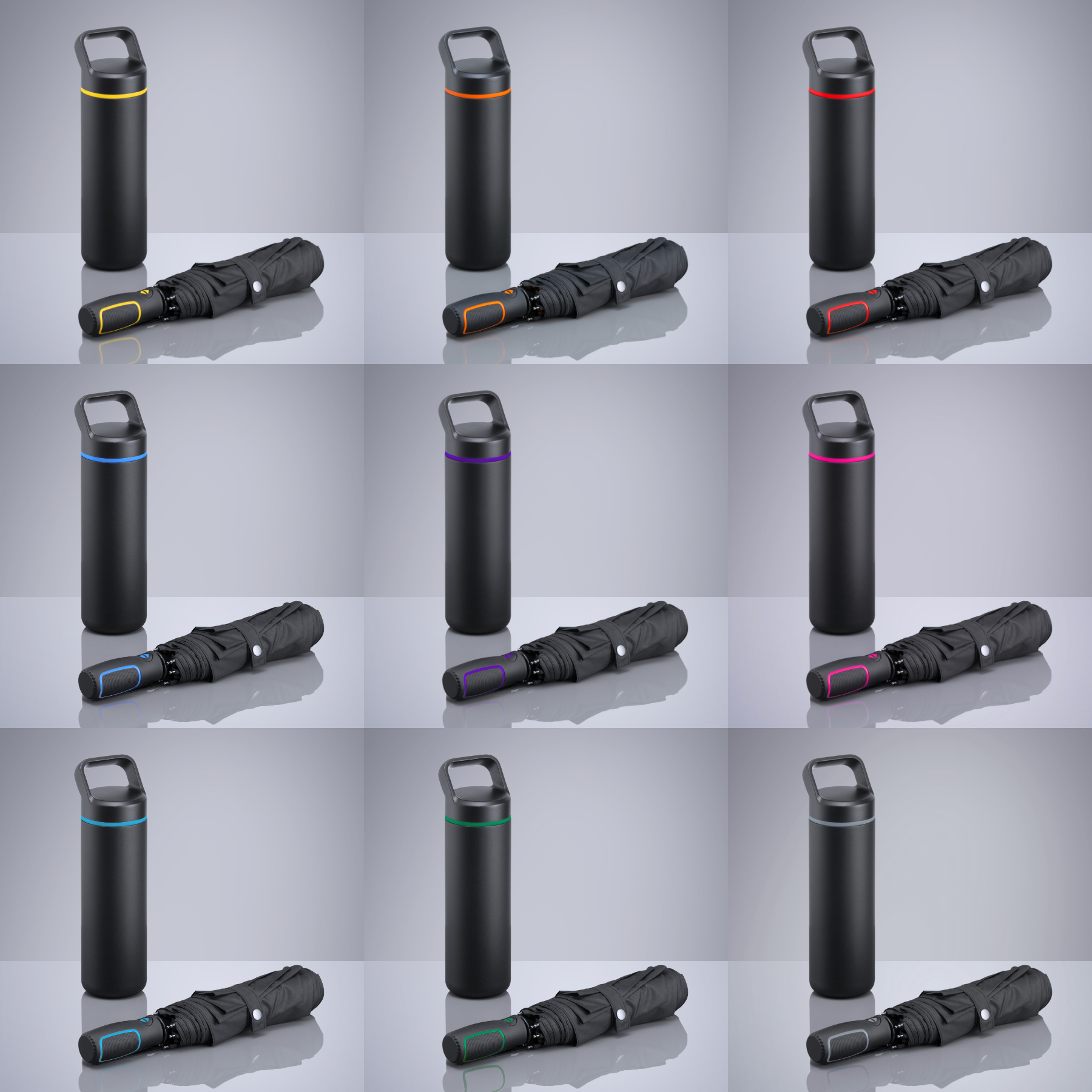 Outdoor Set: terasest veepudel 650 ml ja automaatne vihmavari