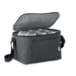 Cooler bag for 6 cans in 2 tone 600D RPET and front pocket. Capacity 3L. Isolation material: 0.15mm PEVA + 3mm foam.