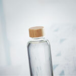 FRISIAN 650 ml klaaspudel bambusest kaanega on lekkekindel, stiilne ja keskkonnasõbralik lahendus igapäevaseks vee tarbimiseks