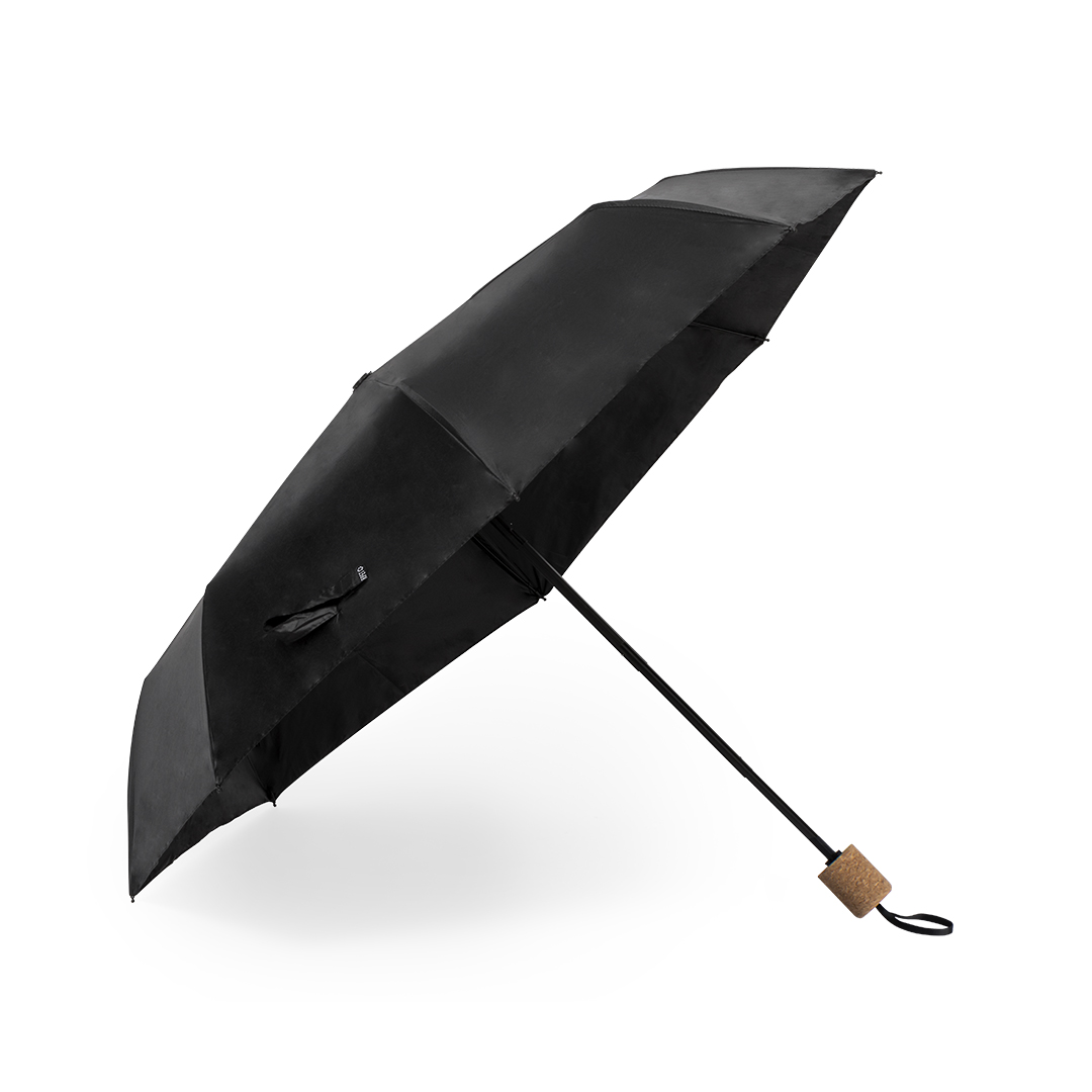 • Kokkupandav vihmavari, läbimõõduga 98 cm, valmistatud 190T RPET-pongee materjalist, millel on korgist käepide. Käsitsi avatav, tuulekindla mehhanismi ja klaaskiust ribidega. RPET-silt rõhutab materjali keskkonnasõbralikku päritolu, mis on toodetud taaskasutatud plastist, soodustades plastijäätmete ringlussevõttu ja panustades planeedi jätkusuutlikkusse.