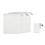 VEGGIE SET RPET on 3 taaskasutatud PET-materjalist võrkkoti komplekt RPET kotikeses, sublimatsiooni trükivõimalusega