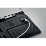 POWERNOTY on A5 konverentsikaust, millel on linase-PU kaaned ja magnetiline sulgemismehhanism. Kaust sisaldab 20-realist märkmikku, elastset pastahoidjat ja mitmeid sisetaskuid dokumentide ja märkmete hoidmiseks. Komplekt sisaldab ka 4000 mAh võimsuspanka, millel on sisseehitatud micro-USB kuni Type-C adapter. Kaust on kompaktne ja kerge, sobib kontorisse, koolitusel või ärireisile kaasa võtmiseks. Materjalid on vastupidavad ja pikaealised. Kaustale või võimsuspangale on võimalik lisada logotrükk. POWERNOTY sobib ärikingitusena ja ka jõulukingitusena. See on praktiline ja multifunktsionaalne lahendus märkmete tegemiseks ja seadmete laadimiseks