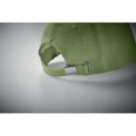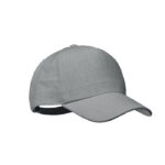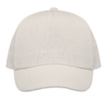 5 panel baseball cap in 100% hemp fabric 370 gr/m² with brass clips on adjustable strap closure. 5 stitched eyelets in matching colour. Size 7 1/4.