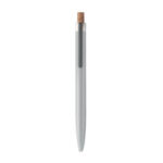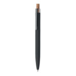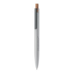Stiilne ja vastupidav pastapliiats, mis on valmistatud taaskasutatud alumiiniumist. Vajutiga mehhanism teeb kasutamise lihtsaks ning korgist nupudetail lisab naturaalse aktsendi. Metallklamber hoiab pastapliiatsi kindlalt tasku või märkmiku küljes. Sinine tint kirjutab sujuvalt, sobides igapäevaseks kasutamiseks. Neutraalne ja esinduslik disain teeb sellest suurepärase firmakingituse; sile korpus pakub ruumi ettevõtte sümboolikale