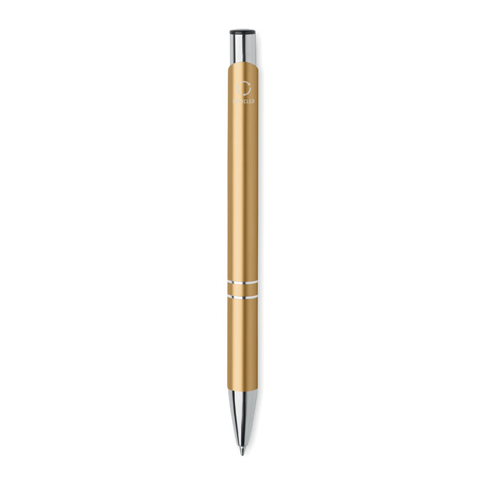 Ümbertöödeldud alumiiniumist pastapliiats sinise tindiga.