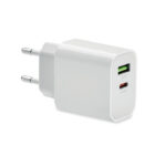 EU 2-pole wall adapter/charger. Supports quick charging technology (18W). 2 ports Type A and 1 Type C. Supports Quick Charge 3.0/Power Delivery technology. Not suitable for UK use.