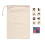8-osaline jõuluteemaline templikomplekt. Komplektis on 8 erinevat templit ja templipadi, millel on 4 erinevat värvi tint. Selleks, et komplekti osasid paremini hoiustada on tootel kaasas puuvillast hoiukott.