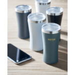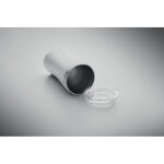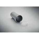 Väike kahekordse seinaga vaakumisolatsiooniga termos, mis on valmistatud taaskasutatud roostevabast terasest (90% taaskasutatud roostevabast terasest ja 10% roostevabast terasest), mille kaanes on läbipaistvast PP-st joogiava. Mahutavus: 160 ml