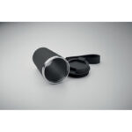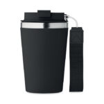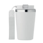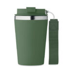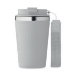 Taaskasutatud roostevabast terasest (90% taaskasutatud roostevabast terasest ja 10% uuest roostevabast terasest) topeltseinaga termostass, ümbertöödeldud PP väliskihiga koos RPET randmepaelaga. Lekkekindel