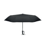 Praktiline ja vastupidav 21-tolline vihmavari, mis peab tuulele vastu ning on mugav igapäevaselt kaasas kanda. Kaheosaline voltimismehhanism muudab varju kompaktselt kokkupandavaks. Täielikult musta viimistlusega klaaskiust raam ja klaaskiust kodarad tagavad tormikindluse ja väiksema murdumisohu. Kattekangas on 190T RPET pongee (taaskasutatud PET), mis on vastupidav ja vastutustundlik valik. D-kujuline karabiin-sang kummise pinnaga püsib kindlalt käes ja võimaldab varju hõlpsalt koti või vöö külge kinnitada. Automaatne avamine ja sulgemine teevad kasutamise kiireks ja mugavaks. Komplektis on hoiukott. Sobib hästi firmakingituseks meeskonnale ja klientidele