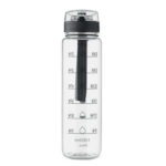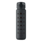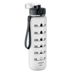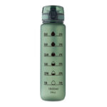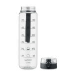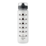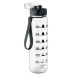 RPET-ist valmistatud 1-liitrine spordiveepudel aitab hoida veetarbimist järjel – pudeli küljel on motiveerivad ajatähised. Ühe käega avatav klapiga joogikork koos turvalukuga ning lekkekindel konstruktsioon tagavad muretu kasutuse. Mugav kandepael teeb pudeli lihtsasti kaasaskantavaks. Praktiline ja keskkonnateadlik valik töötajatele ja klientidele