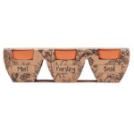 3 savist terrakotapoti komplekt, milles igaühes on erineva ürdi seemned: piparmünt, petersell ja basiilik. Toodetud EL-is