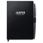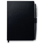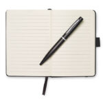 NOTALUX A6 märkmik kõva PU-kaantega, 144 joondatud lehe, elastse sulgemisrihma, paelaga lehemärkmiku ja metallist pastapliiatsiga on praktiline ja stiilne lahendus igapäevaseks kirjutamiseks