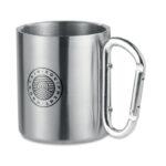 Vastupidav roostevabast terasest topeltseina tass karabiiniga, mahutavus 220 ml. Sobib ärikingituseks või meeneks logoga, ideaalne matkale või kontorisse