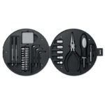 25-osaline tööriistade komplekt autorehvi kujulises karbis. Komplektis näpitsad, 5 padrunit + pikendus, 3 kuuskantvõtit, käepide + 10-ne osaline otsikute komplekt, 2 peenikest elektroonika kruvikeerajat ja mõõdulint.