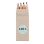 PETIT ABIGAIL on nelja värvilise mini-pliiatsi komplekt taaskasutatud paberkarbis