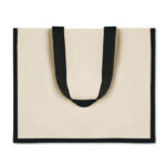 CAMPO DE FIORI joodetud džuutkangast ostukott lõuendist esiküljega ja pikete puuvillast käepidemetega on praktiline ja stiilne igapäevaseks kasutamiseks