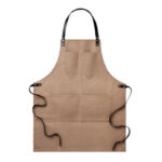 CHEF vahaga lõuendist põll nahkdetailidega, reguleeritava kaelarihma ja praktiliste taskutega pakub stiilset ja vastupidavat lahendust kokkadele