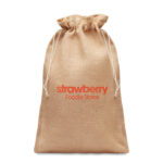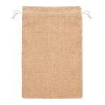 JUTE LARGE on suur jutekott tõmbenööriga, sobiv suurte kingituste ja reklaamkomplektide pakendamiseks