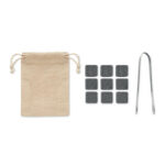 Korduvkasutatavad kivist jääkuubikud. Komplektis on 9  korduvkasutatavat jääkuubikut, puuvillast hoiustuskott ja tangid. Komplekt tuleb stiilses bambusest kinkekarbis