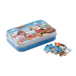 60-osaline jõulupusle, pakitud metallkarpi. Sobib lastele