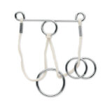 Komplektis 2 metallist, puidust ja puuvillasest nöörist ajumängu: vastavalt 2 ja 4 tükki. Pakendatud taaskasutatud paberist karpi