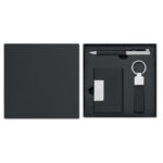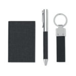 Kingikomplekt sisaldab metallist pastapliiatsit, RPET võtmehoidjat ja RPET kaarditaskut. Sinine tindivärv, stiilne ja keskkonnasõbralik