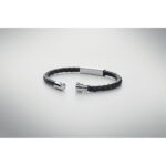 Punutud kunstnahast manseti käevõru poleeritud terasest detailidega. Push-lock lukk. Randme ümbermõõt: 18 cm