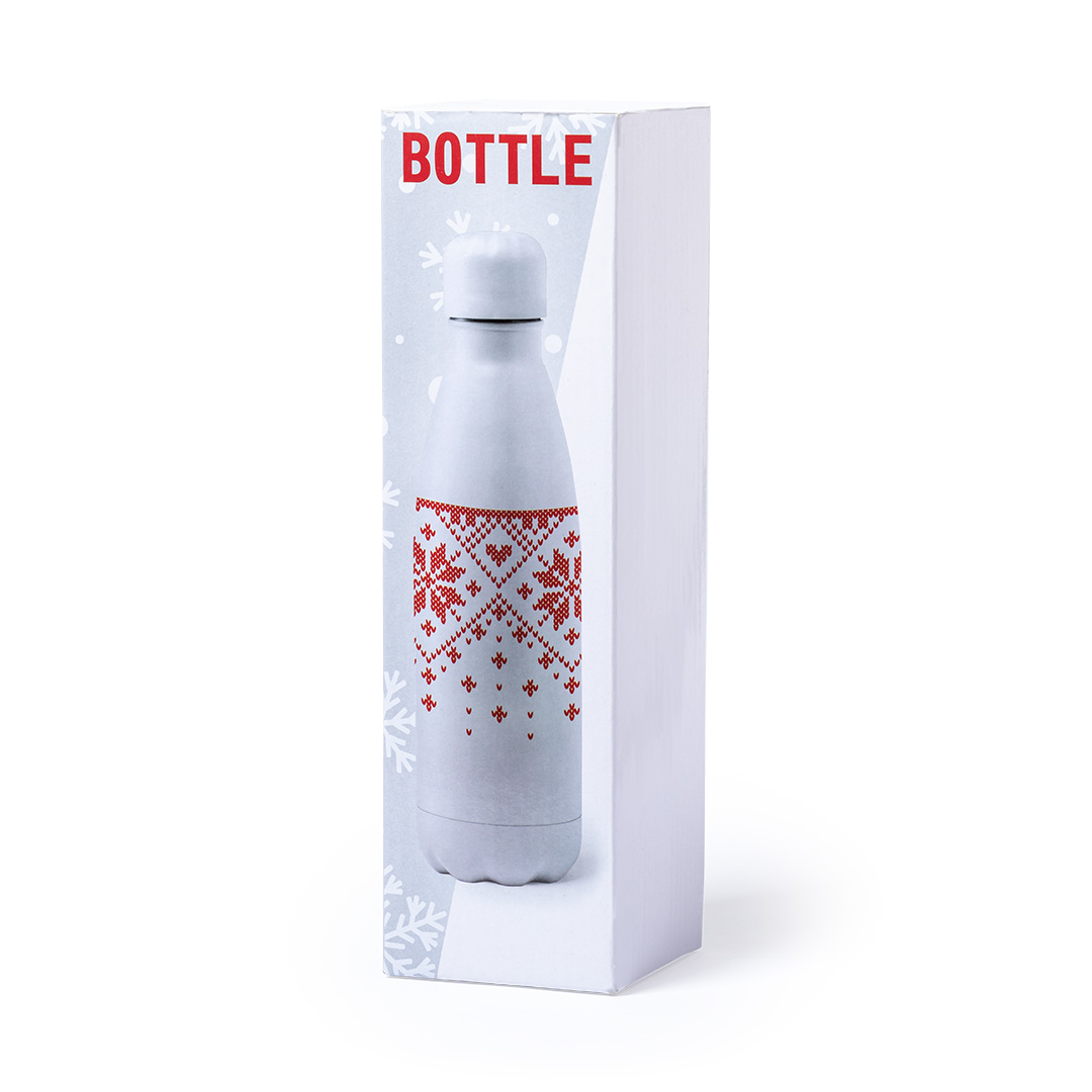 Topeltvärviline roostevabast terasest pudel läikiva viimistlusega ja turvalise korgiga. Pakitud individuaalsesse disainkarpi
