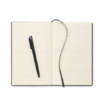 Struktureeritud PU kaanega A5 märkmik, mille seljaosas on keeratava otsaga ABS pliiats