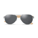 Sunglasses with bamboo arms and coloured mirrored lenses in microfibre pouch. UV400 protection. Bamboo is a natural product, there may be slight variations in colour and size per item, which can affect the final decoration outcome.
