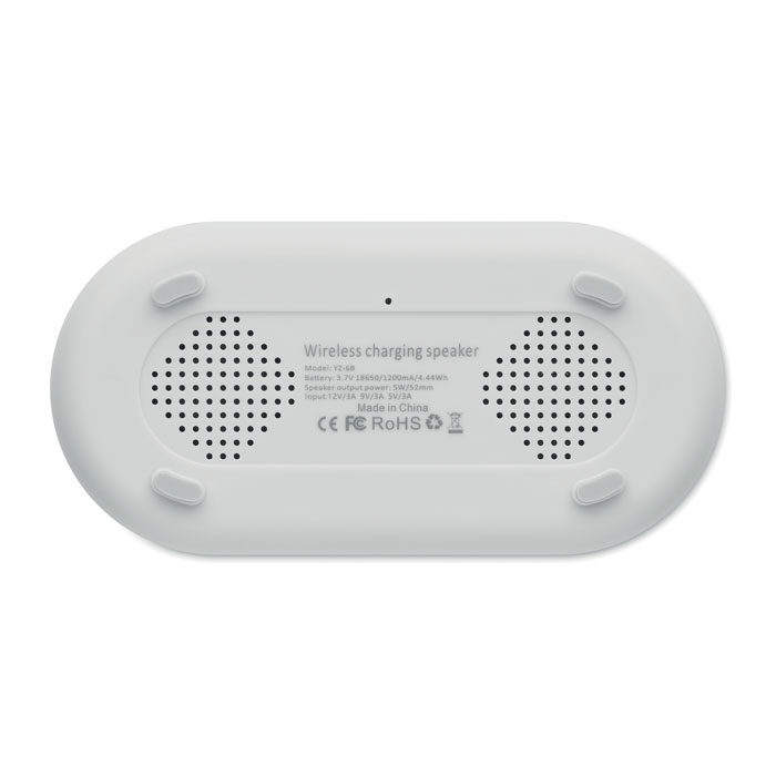 Neli-ühes juhtmevaba 15W laadimisvõimega 5W ABS-kõlar koos ilmajaama ja ümbritseva valgusega. Äratuskell. Aja ja temperatuuri näidik. Sisseehitatud Li-Iin aku: 1200 mAh. Mänguaeg ca. 7 tundi.