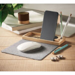 Multifunktsionaalne bambusest lauatarvik: 15W juhtmevaba laadija koos telefonihoidiku, kolme pliiatsihoidja ning kokkupandava RPET hiirematiga. Keskkonnasõbralik disain ühendab praktilisuse ja elegantsi, hoides tööpinna korras ning seadmed alati laetud. Väljund: DC 9V/1.67A (15W)