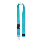 Cotton lanyard with metal hook, detachable buckle and safety breakaway. 20 mm wide.