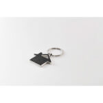 House shaped metal key ring with recycled PU leather inlay.