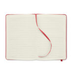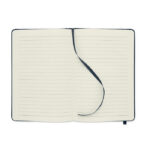 A5 märkmik kõva 600D RPET kaanega. Köidetud. 160 joonelist lehte taaskasutatud paberist (80 lehte). Sobiv elastne kinnitusrihm ja järjehoidjalint. FSC®-sertifikaadiga | FSC MIX CREDIT, P7.1, FSC-C213206.