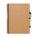 70 puhta lehega märkmik taaskasutatud paberist, komplektis biolagunev pastapliiats. Sinine tint. Märkmiku mõõdud 26 x 19 cm