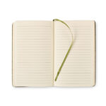 Keskkonnasõbralik A5 kõvakaaneline märkmik, mis ühendab stiili ja vastutustundliku materjalikasutuse. Köiteseotud ja vastupidav – ideaalne igapäevasteks märkmeteks ning firmakingitusteks. Materjalid: 20% teepuru, 30% kork ja 50% polüpuuvillane kangas. Sees on 160 joonelist taaskasutuspaberist lehekülge (80 lehte, 70 g/m²). Mugavaks kasutamiseks on märkmikul toon-toonis elastikpael kinnituseks ja lindist järjehoidja. FSC-sertifitseeritud (FSC MIX CREDIT, N7.1, FSC-C213206)