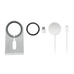 Magnetic Aluminium portable 15W wireless charger with phone stand. Including additional magnetic metal ring to support charging of other non-magnetic wireless chargeable phones. Output: 9V/1.67A (15W) for quick charging.