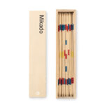 MINI MIKADO on klassikaline pick-up sticks mäng pulkade ja puidust karbiga, logotrüki võimalusega