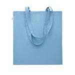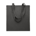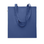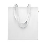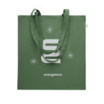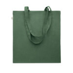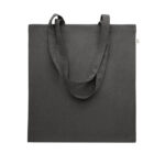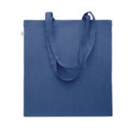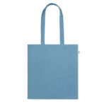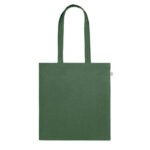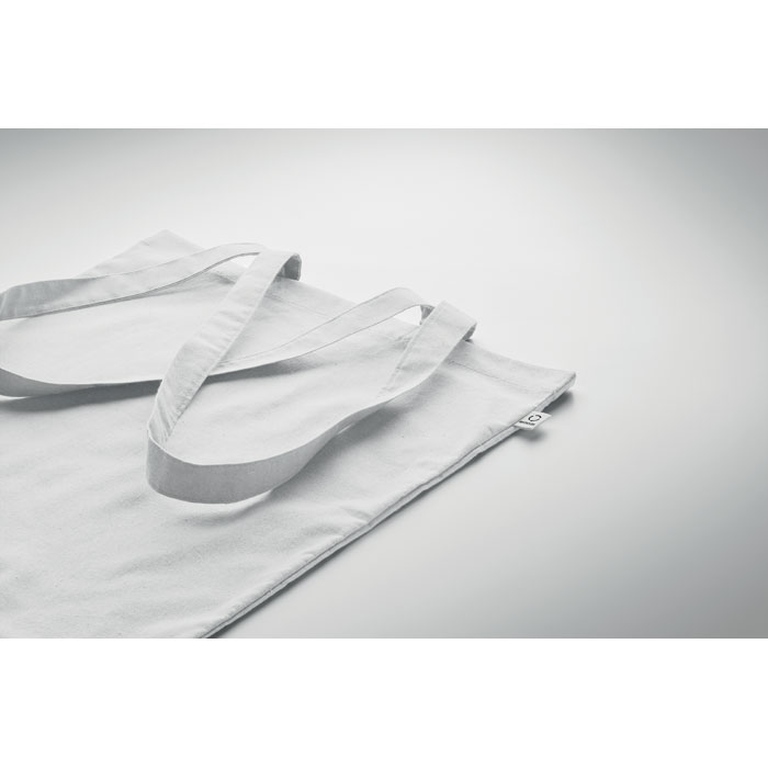 Tarbimiseelsest taaskasutatud puuvillasest ostukott (70% taaskasutatud puuvill ja 30% RPET) pikkade sangadega. 140 gr/m²
