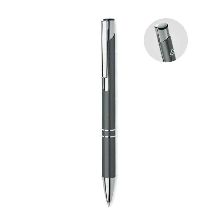 Ümbertöödeldud alumiiniumist pastapliiats sinise tindiga.