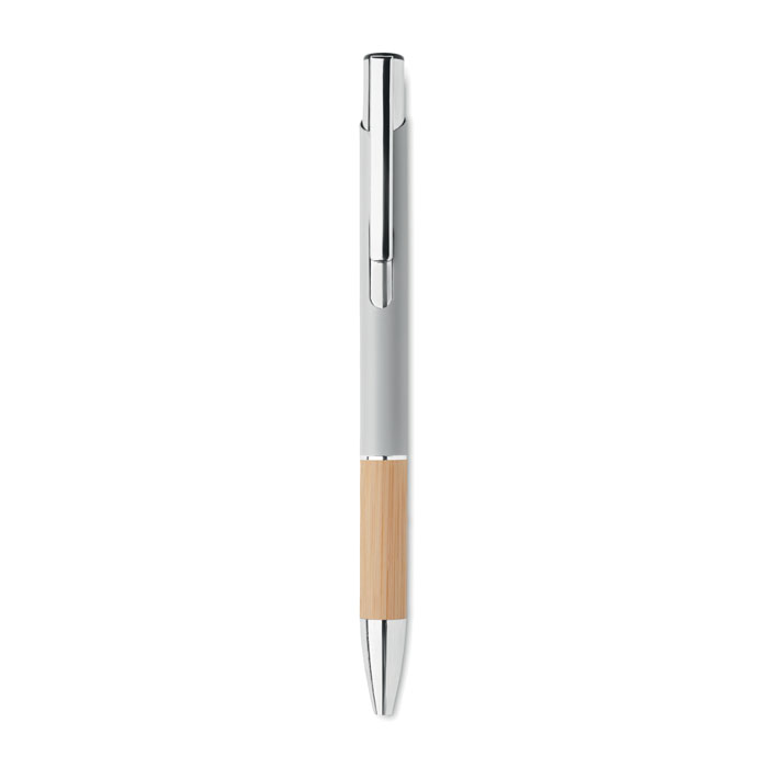 Alumiiniumist detailide ja bambusest käepidemega pastapliiats. Sinine tint