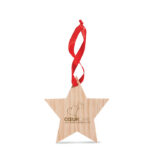 Tähekujuline puidust jõulukaunistus punase paelaga. Mõõdud: 9.5X10X0.5CM