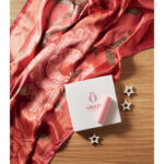 Taaskasutatud satiinpolüestrist mustriga kaelarätik