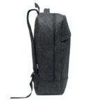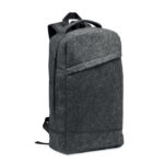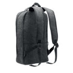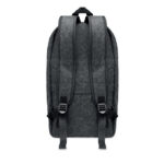 13-tolline RPET-vildist sülearvuti seljakott, millel on polsterdatud õlarihmad ja peamise sisemise sahtel. Sees lukuga sahtel. Käru hoidik tagaküljel