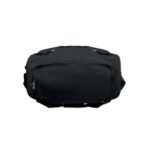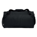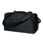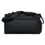 Sport or travelling bag in 600D RPET with large zippered front pocket, inside zippered pocket and adjustable and detachable shoulder strap.
