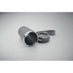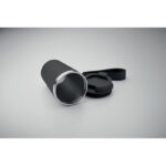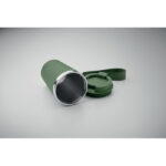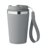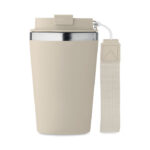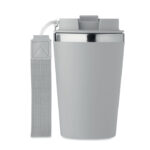 Taaskasutatud roostevabast terasest (90% taaskasutatud roostevabast terasest ja 10% uuest roostevabast terasest) topeltseinaga termostass, ümbertöödeldud PP väliskihiga koos RPET randmepaelaga. Lekkekindel