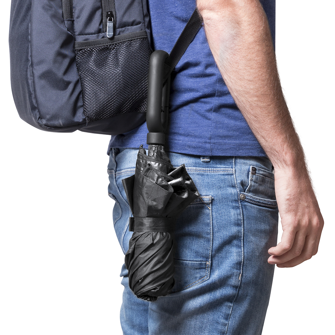 Kokkupandav vihmavari laias värvivalikus, läbimõõduga 100 cm. Käsitsi avatav, tuulekindla mehhanismi ja vastupidavast pongee-materjalist. Mustade fiiberribide, takjapaela ja ergonoomilise käepidemega, millel sisseehitatud karabiinkinnitus. Pakendatud samas toonis individuaalsesse vutlarisse. Võimalus trükkida ettevõtte logo – praktiline ja nähtav reklaamkingitus.