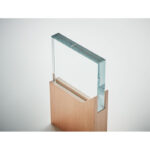 Crystal award or memorial plaque on a beech wooden base in a gift box.